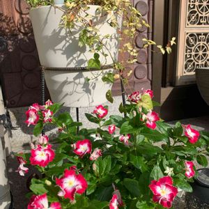 地植えしてた初雪カズラを掘り上げて、鉢が小さくなっていたブルーデージーと寄せ植えにしました。初雪カズラは冬は室内に入れないとないので。色を添えるのに一年草を探しによく行く園芸店に行ったら、鉢を買ったらサンクエールをタダにしてくれました🥰北海道の秋は短いですが、もうちょっとは楽しめると思います😊サンクエール室内でこのまま冬越しチャレンジしてみよっと☺️
