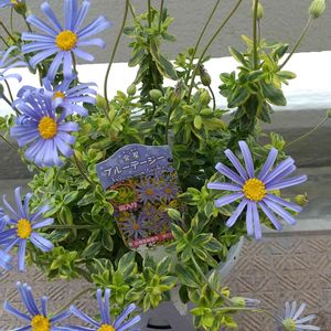 ブルーの花びらと斑入りの葉っぱが、とってもお似合いです。 斑入りのブルーデージー金星 お迎えしました。