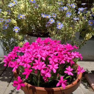 *アッツザクラ💗 *ブルーデージー💙 雲南サクラソウが終わってきたのでアッツザクラと交代しました😊 アッツザクラ💗たくさん咲いてくれて綺麗です🤗 ブルーデージー💙花がら摘みしてスッキリ✨ 沢山咲いてくれて嬉しいけど、花がら摘みが大変😅 なんてわがままなの〜🤣