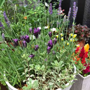 🌼 北東コーナー花壇 🌼 🔸斑入りハクチョウゲ···白いお花が綺麗です(っ’ヮ’c)ワア✨ 🔸サンビタリア···黄色は花壇が明るくなるね💛 🔸バーベナ···紫のお花、楽しみだな〜💜 🔸シルバータイム···2つ目のタイム(*ˊˋ*)集めたくなっちゃいます︎💕︎ 🔸フレンチラベンダー···たくさん咲いてきたよ😍🎶お花がウサミミ🐰 (前pick 2022.4.16)