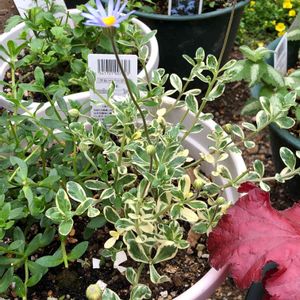 斑入り葉のブルーデージー 緑葉の方はもう切り戻したのに、やっと咲き始めました。