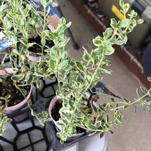 鉢植えの 斑入りブルーデージーさんです😄… 昨日 フラワーショップへ 見切り品でいいのないかなと探しに出掛けましたが ありませんでした😅… ふと見ると この子が 目に入り 可愛いなと思い 欲しくなって お連れしました🤗💕… 葉っぱ🌱だけでも 素敵だと…