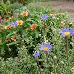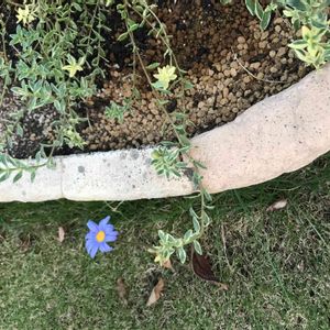 ブルーデージー 涼しくなってから いっきに咲きだしました🎵 下の方の葉っぱが 枯れてきたけど、なんとか夏越し してくれました😅