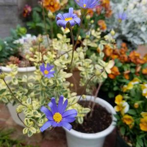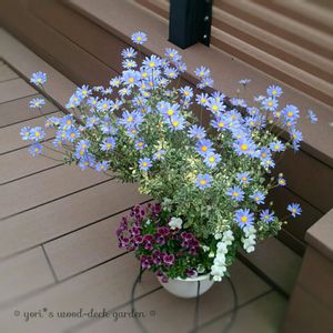 鉢で育ててるオステオも綺麗に咲きました。班入りのブルーデージも咲きだしました*ˊᵕˋ*ꕤ*。゚