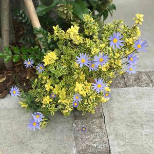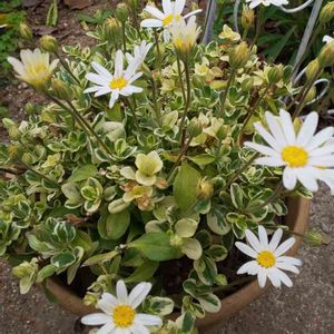 斑入りブルーデージー𖡼.𖤣𖥧𖡼.𖤣𖥧 ようやく見頃になってきました😃 どんどん咲いてます 枝が四方八方へ乱れてますが… 咲き終わったら チョッキン✂チョッキン✂です! どうしたら美しく整うのかが課題ですねー ( ̄。 ̄;)あー難しい💦