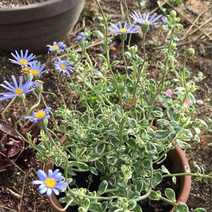 処分価格で瀕死だった 斑入りブルーデージーが なんとか寒さを乗り越えて 咲きました✨