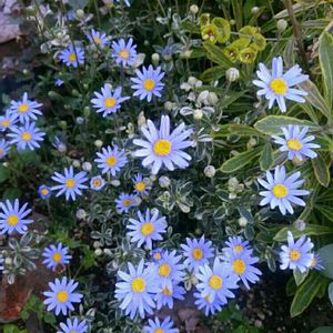 今日はいいお天気ですねぇ☀️ 日光浴びて元気いっぱいのブルーデイジー💙 しっかり冬越しもして気がつけばお花いっぱい💙 ツボミもいっぱい~💙 可愛いなぁ°・.. .*°・.. .+°♩♬♡ 白っぽい丸いのはすべてツボミなんです💙 大きめの鉢に植え替えてあげた方がいいかもね💁♀️