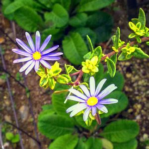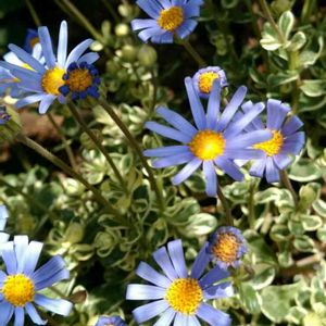 2月にもらった アヤしくなったブルーデイジーさん。 けなげに咲いてくれました💕 このまま復活してねー🌱 フェリシア・アメロイデス(斑入り) キク科ルリヒナギク(フェリシア)属