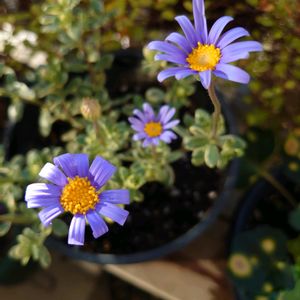 斑入りブルーデージー 斑入り🤭が見えない 去年の猛暑で長年いた10号鉢の大株を枯らしてしまった この子大切にしないと だな この子はバックアップ君