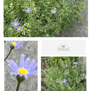 斑入りブルーデージー💮🌿 かなりの寒さの中でも外で頑張ってくれている斑入りのブルーデージー💙 耐寒性が余り強くないので一年草扱いです。 お迎えしても花が中々咲かなかったですが、この時期思いの外咲いています💖