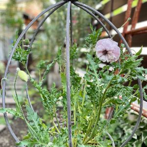 ワッサーと蔓延ったルリマツリ さぁカットするぞ! 意気込んで庭に…おやお客様🦋 お帰り頂く迄しばらく待ち バッサリと行かせてもらいました✂️ ペタペタした花殻が身体中と 髪にも付いて取るの大変💦 スッキリとスカスカになった枝を トレリスに結び付け完了です♡ ④部屋の窓辺から見るルリマツリ また枝伸ばして涼しげな花を 沢山付けてね✨💠