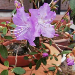 ミニシャクナゲが満開になりました。この花の色が気に入って2年前に買いました。名前が分からないんですけどね。