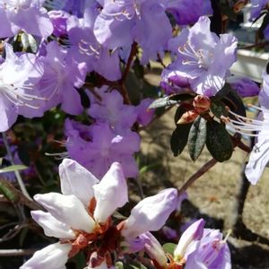 市場の植木市で見つけたミニシャクナゲ。 青い庭を作りたくて ブルー系のツツジやシャクナゲを いくつか育ててみましたが 栽培はなかなか難しくて2本は枯らし 花も青と言うより紫。 でもこれは本当に 青と呼んであげたい花が咲きました。 葉も銅色でとてもシック。 ラスティックメイド(田舎娘) なんて名前がついていますが どうしてなかなかクールビューティーです。 すらりとした立ち姿です。 タラの大木が枯れてできた 明るい日陰に植えました。 うまく育ちますように。