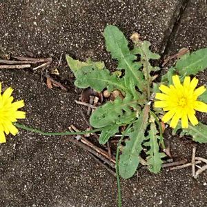 お花を見てコウゾリナ?と思ったけど葉っぱがブタナでした。多分😅💦 公園の石畳の隙間で元気に咲いてました。 こういうのを人はよく「ど根性」とか「健気」とか言うけど、雑草にとって隙間って実はパラダイスらしい。 理由は、他の植物が生えて来て日光を奪われることがなく、日光一人占め出来ること。 あと、踏みつけられにくく、引っこ抜かれにくかったり。