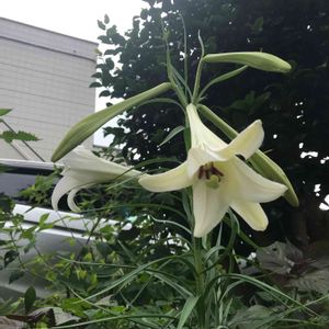 毎年駐車場のブロック塀とモルタル床の隙間に生えてきていたユリ。何ユリか調べたことなかったけど、今年は庭のあちこちに出まくってる。野菜植えたい所のはかなり抜いたが、まぁいいかで残した場所は咲き始めた。