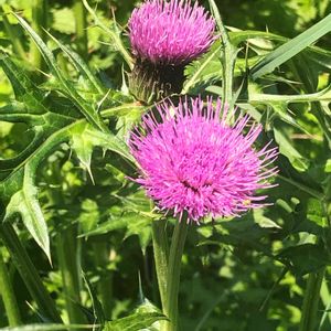 アザミ どこにでも咲く花でしょうが、このきれいな色が目立ってきれいに思うんです。 子どもの頃、きれいな色に惹かれてアザミを摘もうとして、トゲでチクっとしたのを思い出します。