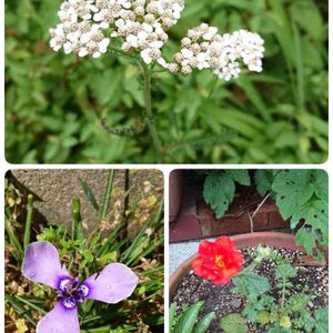 今日のお花 ノコギリソウ 下左:チリアヤメ 下右:ベニバナダイコンソウ 教えていただきました💕 ありがとうございました🙏 昨年8月、ちゃむさんからこの花の名前を教えていただいたことから、 GSに入れていただきました💕 いつもありがとうございます🥰 植物の名前を知りたくて、 ガラ携からスマホに変え、 1年弱でたくさんの植物さんに出会うことができました🤗 最近もいろいろ教えていただき、みなさまにはココロから感謝感謝です🙏🥰🤗 そして今日も、初心に返り~🙌 名前を教えて下さい~🙏 下左側の花は、うちの庭にいつの間にか咲いていたお花さんです😊 下右側の花は、着付けの先生宅のお花さんです😆