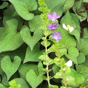 ドクダミと一緒に生えていた、紫色の小花が可愛い雑草。 あなたはだぁれ? キキョウソウ、別名ダンダンキキョウと教えてもらいました😊