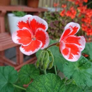 おはようございます😄 ゼラニウム(ミスターレン)さんが咲きました(*^^*)💓 この子は挿し芽からですが 親よりも大きく成長してます😋 赤い花に 白い縁取りが可愛いです👀♪♫…