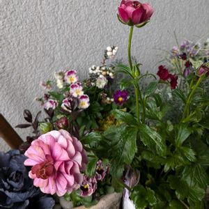朝はパンジーさん達 凍ってましたが お昼ごろは 暖かくなってます ラナンキュラスラックス ティーバ 3年目 咲いてくれました☀️😁