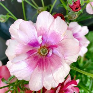ラナンキュラス ラックス ティーバ 色の変化が面白いコです🌸🩷🤍✨ 濃いピンクから薄いピンクへ マットからテカテカピカピカへ ひと株で楽しませてくれています💖