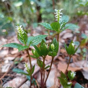 ( *ˊᗜˋ)ノꕤ*.゚コンバンワꔛ❣⃛ 庭からの山野草 ヒトリシズカ🌿 花言葉✾愛にこたえ 隠された美 源平合戦の英雄 源義経の愛人 舞の名手であった静御前に由来ꕤ…˖* 静かに咲いちゃって😻 4⃣5⃣枚目 パラパラ種こぼしていた ミズタマソウ 抜かれないよう移植