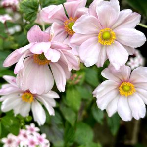 🍀おはようございます🍀 防虫ネットを開けて ラッキョウのお花を〜🤳… ②昨年のラベルと共に 球根を掘り上げていた 八重咲きアネモネ 凛々花を 10月に植え付けていましたが 🌱が出てきました♬ ③オキザリス ペンタフィーラ🩷 クルクル蕾の色が見えてきました🎶 ④大好きなコスモスと 種蒔きジニアのコラボ💕 もう少し楽しめそうです😄 ⑤オキザリス バリアビリス ホワイト🤍 鉢植えを投稿していましたが 分けて、地植えにしていたのも 咲き始めてきました♬