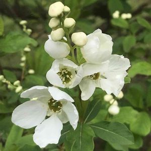 おはようございます。いつも見て頂き有難うございます。 リキュウバイ(利休梅)の花 別名 バイカシモツケ(梅花下野)