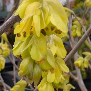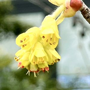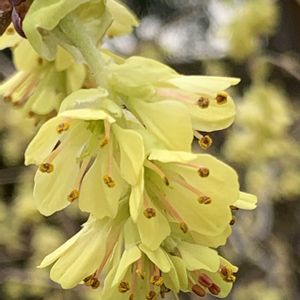 葉が出るよりも先に 7~10個の丸みのある 小花が連なり〰︎ 花序になって下垂します💛 野鳥が吸蜜にやってくる🎶 土佐水木(とさみずき) マンサク科