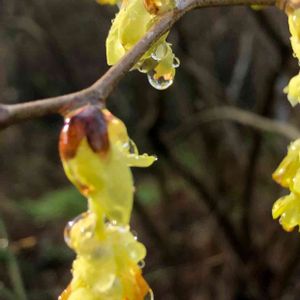 トサミズキに雨水が残ってます 咲き方もとっても可愛い💕し 水玉を抱いてステキです😊 医療従事者及びコロナと闘っている方々に感謝👏