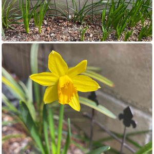 掘り上げて保管していた球根を去年10月に植え付けました 全然出ないからお亡くなりになったかと思っていたら いっぱいでてきました😊 真ん中の細長い葉は玉すだれ どこかにガラスの花の球根もいるはず 球根どこに植えたかわからない問題発生です😅