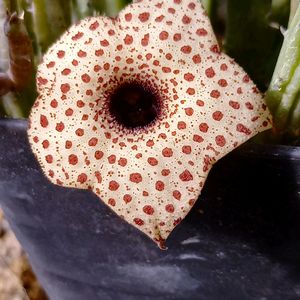 フェルニア オクラータ 今年初めて開花したガガイモ! …多分w 別のも咲いてたのでどっちが先に咲いたのやら…🤔 そういえばつい最近 鞘が伸び始めたガガイモが 有るんだが…去年の11月で花は見納めしたので約4ヶ月の期間越しに伸び始めたことになる… 更に、去年花が落ちた後の軸が未だに残ってるのでもしかしてこれから鞘が出来る事もあるのか…❔ 最近は色々とガガイモに関して勉強してたのですが タバロベアと言うガガイモ… アレはタバレシアとオルベアバリエガータとの交配種との事… あんな似てない物同士で交配出来ると言う事はタバレシアXフェルニアもイケると言う事なのかな… ガガイモの交配は 無限の可能性を感じる…❕