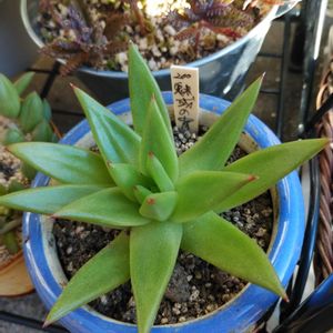 おはようございます☀ すっきりした空気です🎵 日中はまた暑いんでしょうが💦 今夏アガベさんと一緒にお迎えした子🌵 うちにいない子は魅力的に思えて✨しかも名札・値札にもあるように200円とお手頃価格でした😆✌️ さぁ、どんな秋の色になるんでしょう🍁 さぁ、お仕事行ってきます🙋