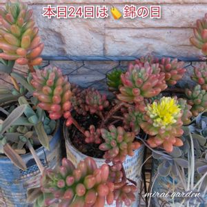 おはようございます☀ 今日は24日🏷錦の日 です🤍🌱 我が家の錦の日は…オーロラです🤍🌱 なんと、お花が咲きましたぁ👏٩( ᐛ )( ᐖ )۶ 初めてのお花に驚き😲と感動✨です🥰 このオーロラさんは隣の子持ち蓮華錦さんの場所に発根侵入していて、かなり場所を陣取ってるので😅植え替えしてあげたいけど…🙄お花も咲いてくれてるしこれはこれで、まっいっかなって思うO型です🤭❤️ 話は変わりますが、先々週、ある園芸店で斑入りのルビーネックレスを見つけたんです( ⊙⊙)!! GSで調べたらよかったけど、初めて目にした私は、とっさのことでお値段もお手頃価格だったのでお迎えしてみたのです… お迎えしてから、GSで斑入りルビーネックレスを見てみると、何やら怪しい匂いがしてきてて…とりあえず、様子を見ながら管理しています💦 今日の🏷錦の日に斑入りのルビーネックレスの投稿があるかしら🥺 長文になってしまいました😟すみません💦 🏷錦の日 皆さんの投稿ご参加お待ちしております🤗 今日は父の命日 お墓参りに行ってきます✨