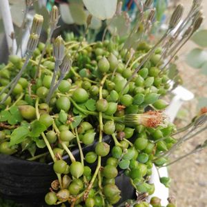 おはようございます☀ 今日は8日ですね♡ 🏷ネックレスの日です🤗 ネックレスの名前の付いてる子もそうですが、ネックレスのように垂れ下がる多肉ちゃんや植物でも、是非、投稿ご参加よろしくお願いします(❁ᴗ͈ˬᴗ͈) うちのネックレスちゃんは銀緑輝です✨ 昨年よりもお花の数が減ってるのは、春先に枯れた枝をチョンパ✂️したからだと思います🙄 お花も小ぶりな気がするかも🤔思い切って、短くチョンパ✂️するほうがいいのかなぁ🤔 ピンク色のお花は何日も咲いてくれて、癒しと元気をもらえます🥰 皆様、今日も素敵な一日をお過ごし下さい🍀