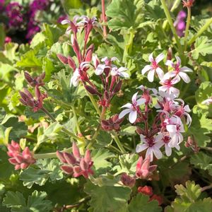 ナツメグゼラニウム🌼が 朝陽にワサワサ!しています😊🎶🌼🌼🍃