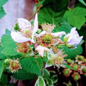 ナニガシカのベリー種 近所のお宅のフェンスにビッシリ茂ってます だんだんと実がなってきてます どんな味なのかなぁ… (。・ρ・)ジュル ※名前「ブラックベリー」を教えて頂きました🐦
