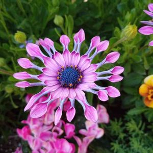 花びらがキュッとしたやつ スプーン咲きって言うんですか? 初めて見ました〜♪ いつもは歩いてないご近所で、道路沿いにワンサカ咲いてました☺️ オステオスペルマム?