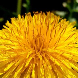 今朝のたんぽぽ 朝もまだこの時間では花が開ききってません(もう少しで全開) 真ん中に花びらが丸くなってる状態も好きなんですよ