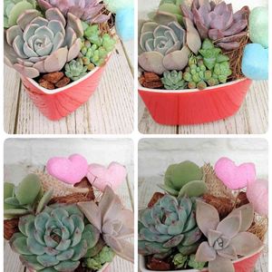 バレンタインを意識してハートの容器に寄せ植えてみました( ⁎ᵕᴗᵕ⁎ )❤︎ あと、高さを出すのに 小さいパフェのような容器を置いて、そこからビーズが溢れてるようにしたかったけど、 あんまり分からないな( ºωº ;)