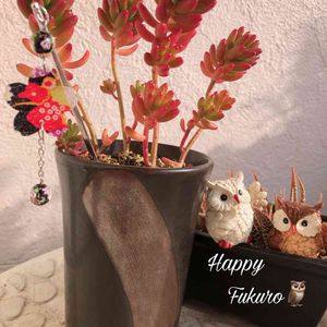 おはようございます☁☁☁ さっきはビックリした⤵︎⤵︎⤵︎⤵︎⤵︎⤵︎⤵︎ またしても☁❄❄⛄❄❄☁が降ってきたし💦💦積もらないからいいけどね❄ 鉢はよーちゃん作フクロウ🦉 グリーンは花も咲いてるヴォルケンシー🍀 玄関に飾ってるフクロウ🦉 苦労がないように不苦労と書くようですね*(^o^)/*