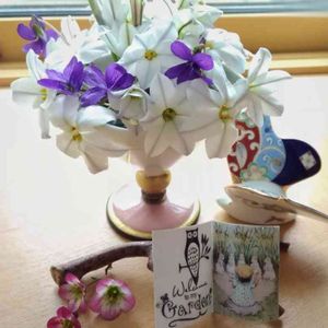 おはようござます 今日はフクロウの日🦉 グリーンと陶器とフクロウと🏷 庭のクリスマスローズとバイモユリ 多肉クリスマスイブの花を白山陶器の一輪挿しに… たくさん押し込みました😆 楽しい企画をありがとう🦉☺️