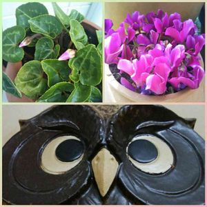 おはようございます!😊 今日の予報は曇りです☁ みぃみぃ♪ちゃんお勧めの…☺️ グリーンと陶器とフクロウと参加しま〜す🏮 (Ӧ)(ӧ)(Ӧ)(Ӧ)(ӧ)~ワッショイ♬ 左上…去年の8/20のシクラメンの様子です🌱 夏越し成功して、出てきてくれましたよ💖 右上…現在のシクラメン🤭 凄いでしょ😆 下段…インパクトあり過ぎのフクロウさん😻 優しいみぃみぃ♪ちゃんにお借りしました🤗 シクラメンがかすんじゃったよ🤣