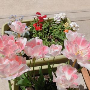 この時間も好き。 俯瞰して見ると……チューリップ🌷がすかすかで寂しい😓ほかのお花も一緒に植えればよかったな〜