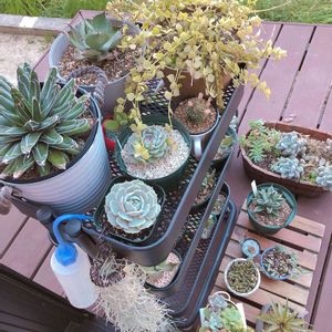 カキコがぎゅうぎゅうだったので、全部外して 親だけ元の鉢に戻す予定でした。が、けっこうしっかりくっ付いていたので ビビりの私は 1番大きいお子ちゃまだけ外して あとはそのまま植え替えました。 しかも 一回り大きい鉢がなく(2サイズ大きいのはあるのにw)結局 元の鉢に戻しましたとさ🙄 カリカリの根は切ったし ソイルは新しくしたし まぁ…大丈夫っしょ😂 他にも、買ったままのポットで管理してた多肉達を植え替え出来て 素晴らしく充実した日でした😍😍
