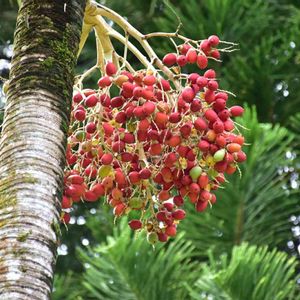 マニラヤシの実が赤くなってキレイ。♥ 食べられたらいいのになあ。。😋