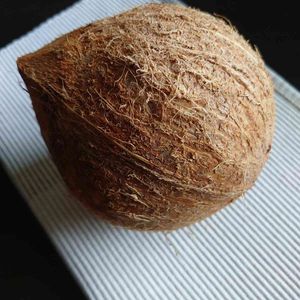 もらったヤシの実が冷蔵庫に入ってるの、忘れてた。割って飲みましょう。🌴 外皮(ココナッツハスク)を剥いだ状態のココナッツ。普通、こういう状態で売ってるし、こういう状態でもらいます。🥥