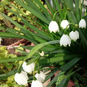 あらまぁ いつの間に! 今年も咲いていました✨庭のスノーフレーク✨ もう少し目につくところに株分けしてもいいかな😄 出来るかなぁ🍀
