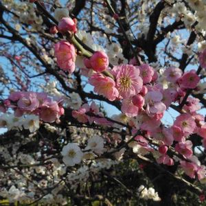 お散歩先の梅の木。 多分先週がピークだったかも・・・ 1本の木から紅(ピンク)と白が咲いている木です。 可愛くてお得😅