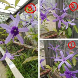 今週のヒスイカズラ~! 1週間前からの一気に開花です。 ↗️の隅にちょっと見えてるのが先週開花した子の今週の姿。 ↙️のように花殻が並べてありました。 ↘️隅の子は先週蕾で集合写真に登場した子です。